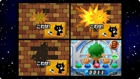 ポップ君がボタンに重なったタイミングでWiiリモコンとヌンチャクを振ろう!