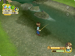 | Wiiリモコンではじめる牧場生活。Wiiリモコンを振って直感的に畑仕事を楽しめます。 結婚して子どもが生まれると、畑仕事をお手伝いしてくれるように。のんびり釣りをしたり、料理やおしゃれを楽しみながら、自由な牧場ライフを過ごせます。 |