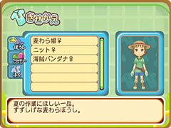 ![]() タンスから好きな洋服を選んで、着替えを楽しむことができます。帽子やアクセサリーも使っておしゃれをしよう! |