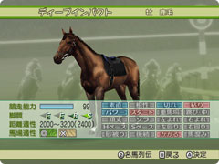 ![]() ニンテンドーWi-Fiコネクションで、ウイニングポストシリーズでおなじみのスーパーホースデータを獲得。 |