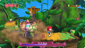 | 本作は、プレイヤーがクロノアを操作し“ファントマイル”という夢の国を舞台に冒険します。「十字ボタン」と「2つのボタン」のみで遊べる簡単操作の横スクロールアクションを採用しているので誰でも楽しめる。Wiiならではの美しいグラフィックでアニメを見ているかのように魅力的に動くキャラクターが、ユーザーを幻想的な世界へとひきこみます。クロノアと迎える感動的な物語の結末は必見です。 |