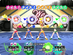 Wiiリモコンをポンポンに見立てて振るだけの簡単操作で、誰でもチアのダンスを楽しめる!