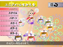 ![]() キャラクターのカスタマイズが充実! 衣装はもちろん、胸のチームロゴやポンポンの色も細かく設定可能。 |