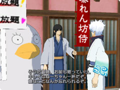 | Wiiリモコンで銀魂世界にツっこみましょう。ストーリーが変化するのはもちろん3Dモデルだからこそ見れる銀さんたちの表情も色々見れます。銀さんたちの顔にメイクして面白VTRを作ることも撮影した写真を友達と交換することもできます。 |