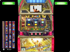 ![]() 金と紫の筐体が輝く「パチスロ北斗の拳SE 昇天バージョン」も先端のCGクオリティで美麗に再現。 |