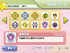![]() 集めた称号は「獲得称号一覧」で閲覧可能。全称号100種類を集めよう! |