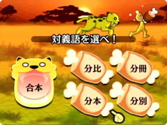 ![]() 肉をめがけて追いかけてくる猛獣から逃げ切れ!あせらずに正しい答えを選べるかな!? |