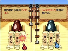 ![]() 求められるのは「漢字力」+「反射神経」!すばやいWiiリモコンの操作で、ライバルよりも早く札を見つけよう。 |