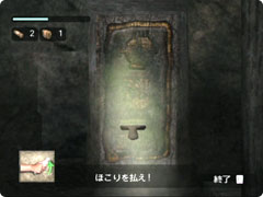 ![]() 遺跡の中にある埋もれた印を捜すときは、ハケ(Wiiリモコン)を使ってほこりを払え! |