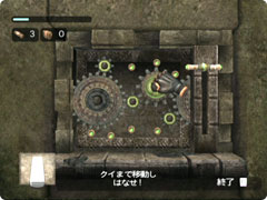 ![]() 正しい位置に歯車をはめ込むと遺跡が動きだし、謎の解明ができるぞ! |