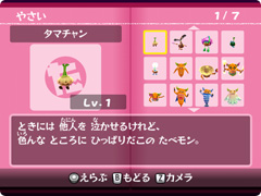 ![]() 食べた“たべモン”は図鑑で閲覧することができる。“レアたべモン”を探すのも楽しい! |