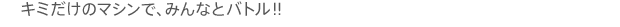 | 車のカスタムだけじゃなく、自分だけのキャラクターまで作れちゃうバラエティレースゲームが登場!かわいい車、かっこいい車、変なキャラ…自由にカスタムしてレースにいどもう!レースは奇想天外なギミックが仕掛けられたコース、一発逆転もねらえるアイテムなど楽しさ満載!みんなで遊べば楽しさ倍増! |