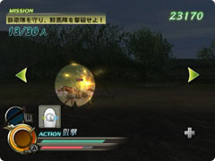 ![]() 遠くの敵をスナイパーのように倒す「狙撃」。ほかにもWiiならではの多彩なアクションが楽しめる! |