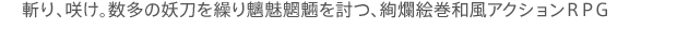 ![]() 日本画調に緻密に描かれた30種以上の地域(ステージ)と、繊細なアニメーション演出で魅せるキャラクター! |