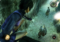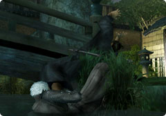 ![]() 多彩な忍具を使って、篝火や灯篭の明かりを消して闇を作り出す。暗闇に潜むことで敵からの発覚を防ぐ。 |