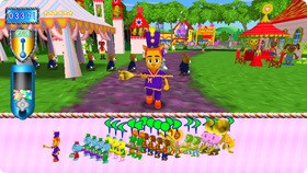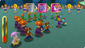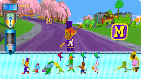 ![]() 行進の途中には、障害物やお邪魔キャラなどが行く手をさえぎる! |