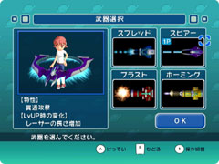 ![]() 自分の操る機体は4種類から選ぶことができる。それぞれ能力が異なるので、自分好みの機体を選ぼう。 |