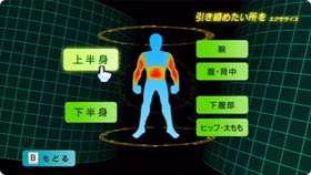 引き締めたい部分、消費カロリー、レッスン時間など、プレイヤーの希望どおりにレッスンを組むことができます。