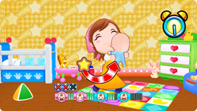 各子もりステージは、それぞれ背景やシチュエーションに変化させた構成となっています。 たとえば、泣いているあかちゃんがいれば、泣きやませて笑顔にさせたり、不機嫌であれば、やさしくゆらし寝かしつけてあげます。 さまざまな要素がたくさん詰まったあかちゃんのお世話や子もりをぜひ体感してください。