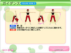 セレクトモードのガイダンスではエクササイズのポイントを図入りでわかりやすく解説しています。