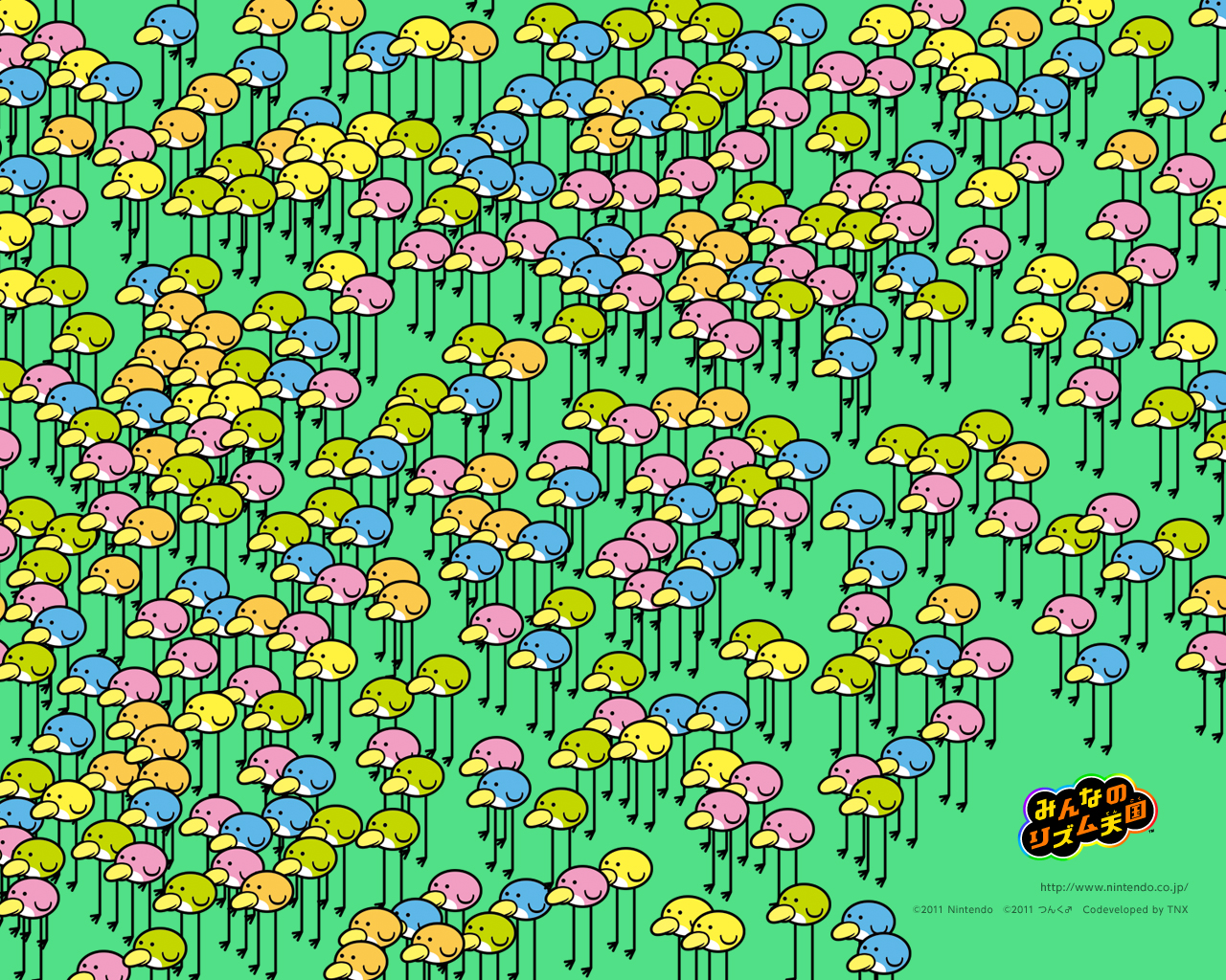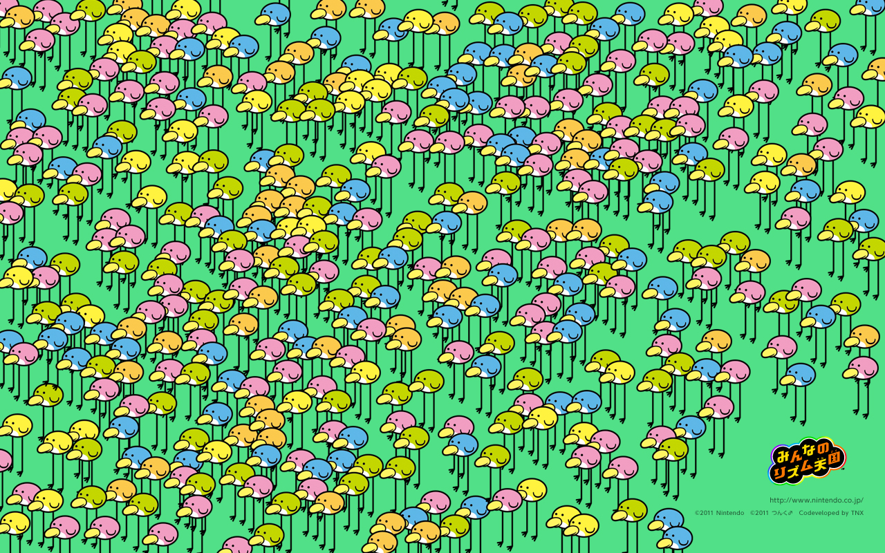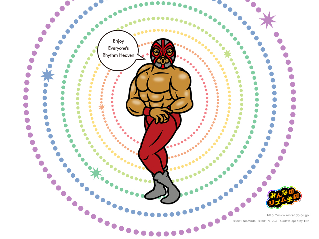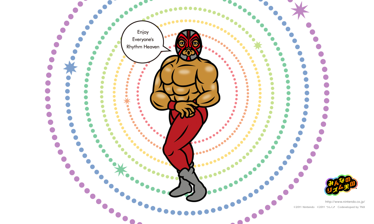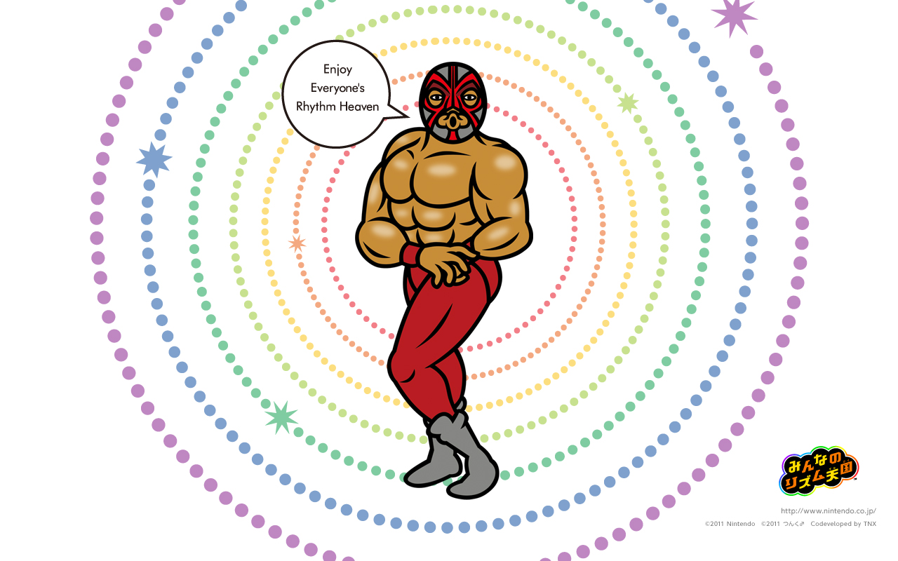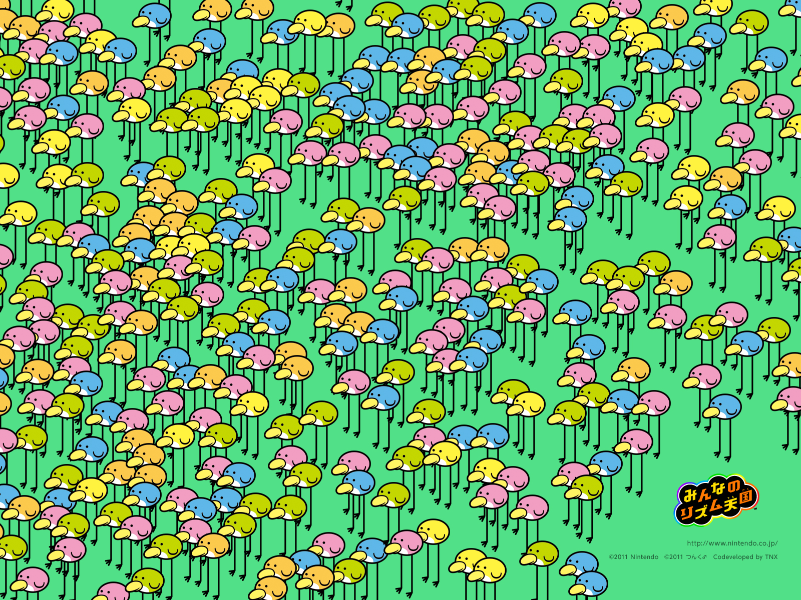 みんなのリズム天国 あそびかた 新作リズムゲームが50種類以上 2人で一緒にノリノリ♪ つぎつぎオープン、おまけ要素 みんなの壁紙 壁紙の設定方法