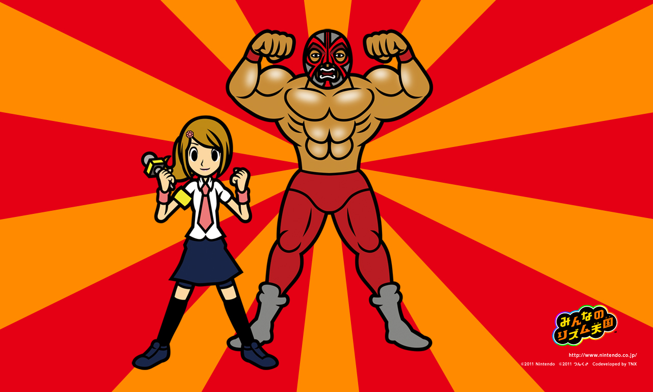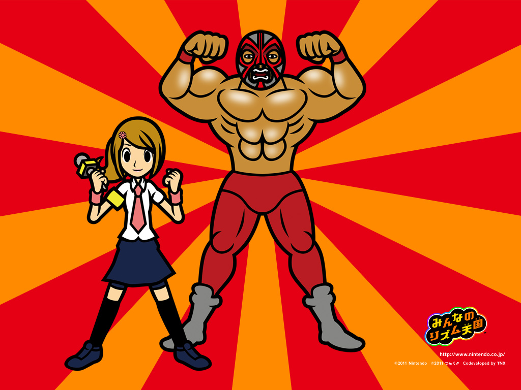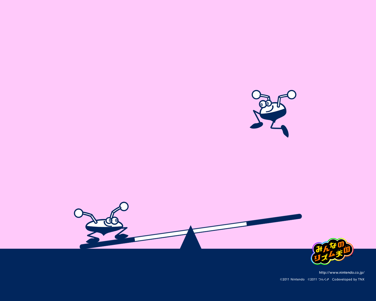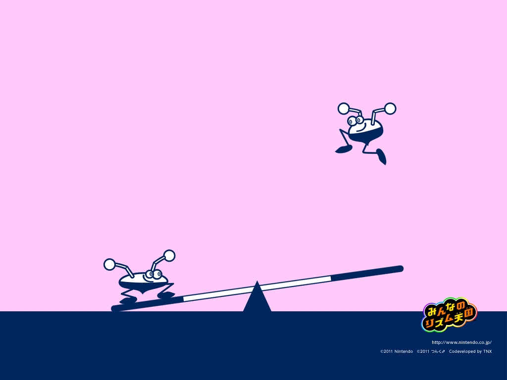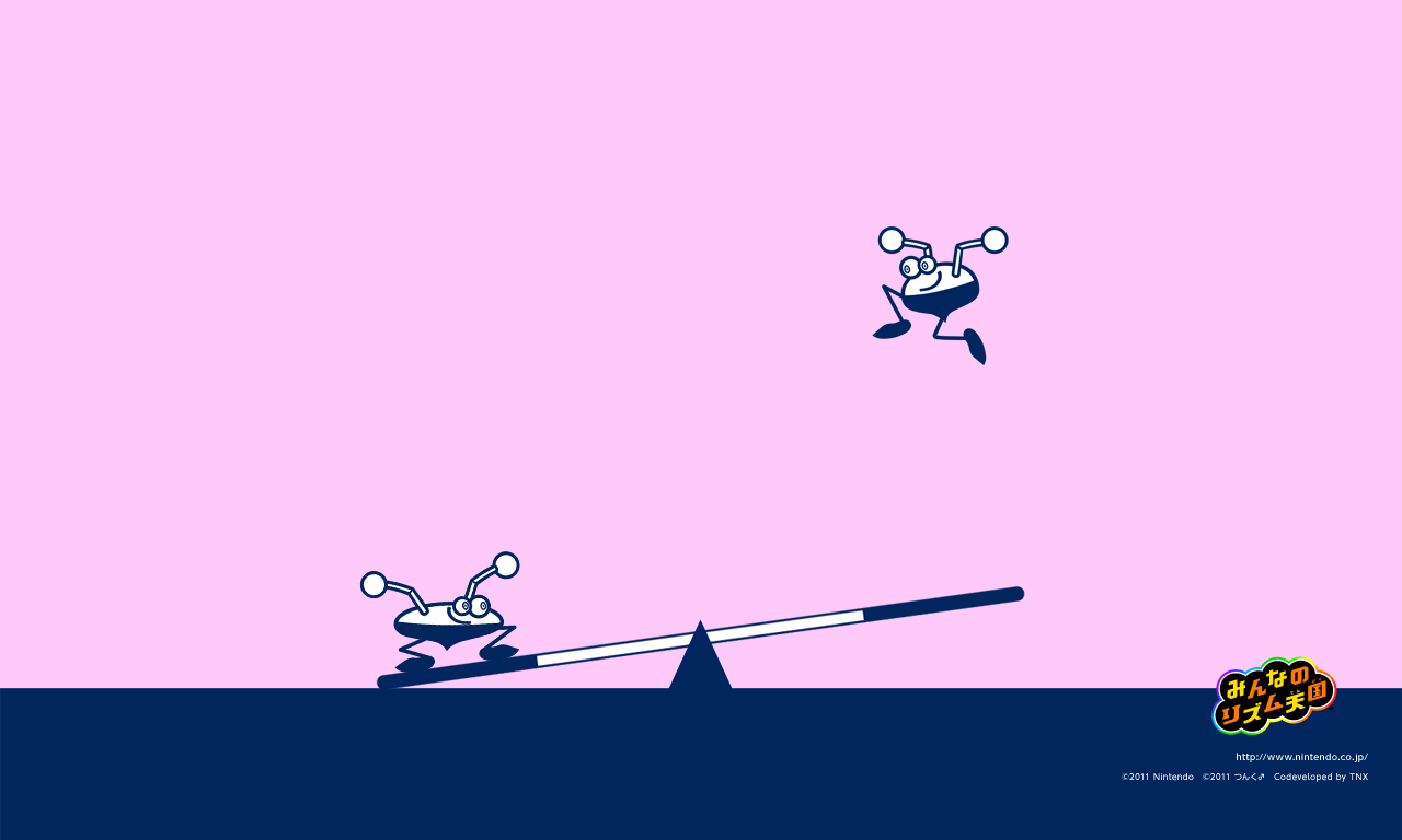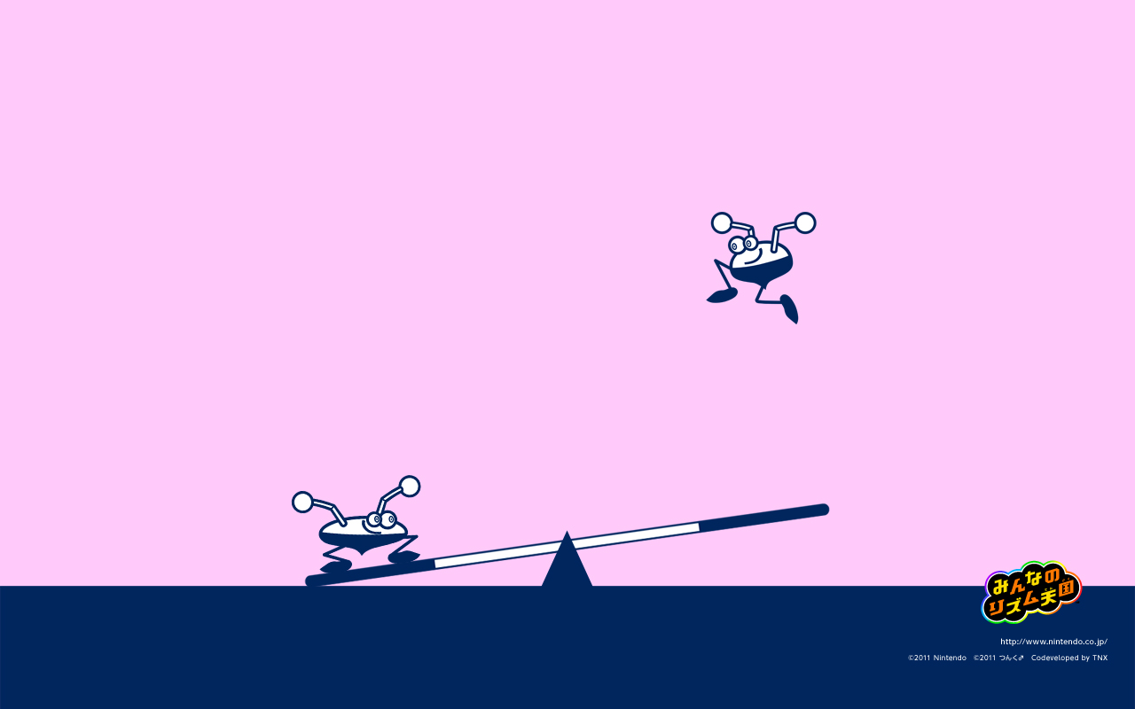 みんなのリズム天国 あそびかた 新作リズムゲームが50種類以上 2人で一緒にノリノリ♪ つぎつぎオープン、おまけ要素 みんなの壁紙 壁紙の設定方法