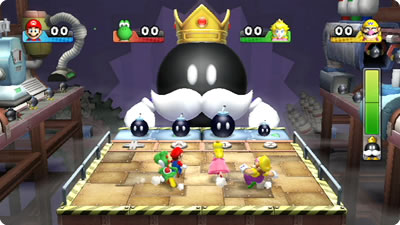 大中小のばくだんを選んでボムキングを攻撃! ライバルと同じものを選んでしまうと投げられないので、ばくだん選びは慎重に!