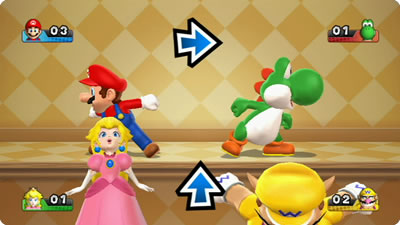 表示された矢印と同じ方向へ向かないように気を付けて!矢印の向きを落ちついて判断して、Wiiリモコンをすばやく操作!