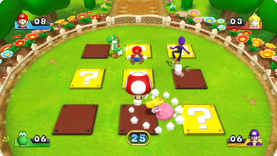 いきおいよくヒップドロップしてキノコが入ったパネルをめくりますいちばんたくさんのキノコを集められるのは?!
