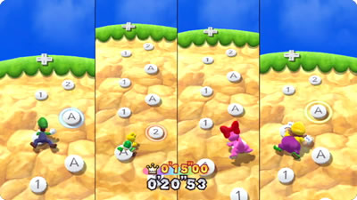 岩かべに配置されたボタンと同じボタンを押して岩の頂上へクライミング! ミスをすると、ひとつ下におちてしまうので冷静に。