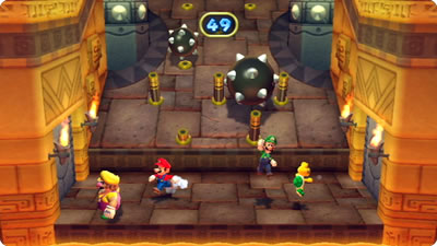 右や左に転がり落ちてくるトゲトゲボール。うまくかわして最後まで逃げられるかな?!