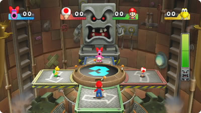 全員が選んだ数の合計分ステージが回転。バッタンの正面にならないよう、相手のようすを見ながら0か1をチョイス!