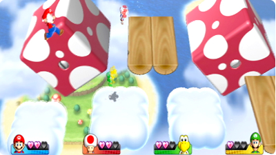 空中に浮かぶ足場をジャンプしながら、いち早くゴールへ! 急ぎすぎてうっかり下におちないように注意!