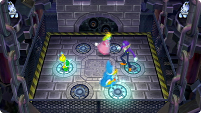 ライバルよりも早くフタの開いたマンホールへ! 中に入れないと、おちてくる天井につぶされてしまいます。