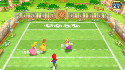 ライバルたちのタックルをかわしながら、ボールを持ってゴールへ! 1人側はダッシュのタイミングがカギです。