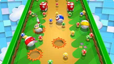 ボールの中に入ったら、あとは運にまかせるだけ! 穴の中にはまったら、Wiiリモコンをすばやくふって脱出します。