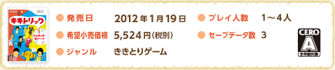 発売日:2012年1月19日 / 希望小売価格:5,524円(税別)/ ジャンル:ききとりゲーム / プレイ人数:1〜4人 / セーブデータ数:3 / CERO A