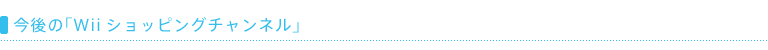 「Wiiショッピングチャンネル」って「Wiiスポーツ」や「ゼルダの伝説」のような看板ソフトみたいには注目を浴びないんですけど、実は利用者も多いし、新しいチャンネルが追加されると、必ず「Wiiショッピングチャンネル」を通じて世の中に配信される。これは、ちょっと不思議な感じがしますね。 | |