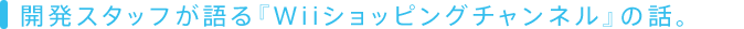 Wiiショッピングチャンネルの開発スタッフに制作にまつわる話を語ってもらいました。