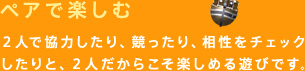 ペアで楽しむ 2人で協力したり、競ったり、相性をチェックしたりと、2人だからこそ楽しめる遊びです。