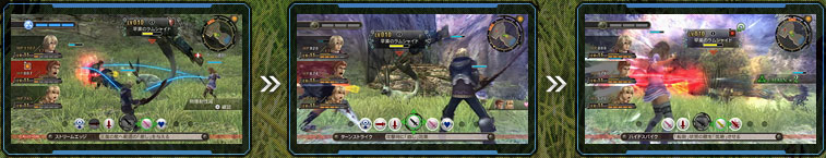 仲間全体の結束の力を表すパーティーゲージがたまると、仲間全員が連続してアーツを繰り出すチェインアタックが可能になります。チェインアタック中は時間が止まるので、どのアーツをつなげていくのかをじっくり考えられます。アーツを効果的につなげられれば、大ダメージのチャンスです。