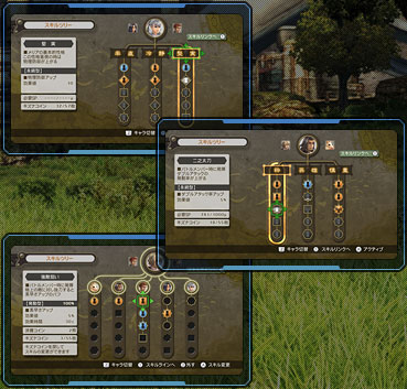 自分だけの戦術を生み出すキャラクターカスタマイズ [スキル―性格による能力強化―] キャラクターは性格に合わせて、スキルと呼ばれる能力を獲得していきます。キャラクターごとに数パターンの性格が用意されており、伸ばしたい性格を選択して能力を伸ばすことができます。物語が進み、仲間とのキズナが深まると、仲間のスキルも利用して能力を上げられるようになります。