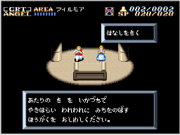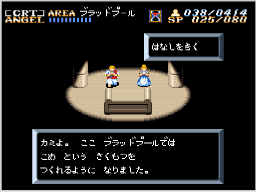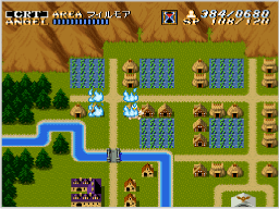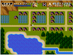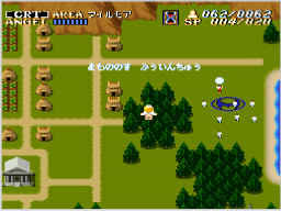 町を発展させるときは、道を碁盤目状に引くと効率よく人口が増えます。コマンド「まちのほうこう」を使い、土地のすみずみまで道を作ってください。また、すみずみまで町を発展させることで、捧げ物が見つかるチャンスも広がります。 |