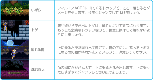 ゲーム序盤で登場する罠です。ダメージを受けたり、ミスになってしまうトラップもあるので気をつけましょう。