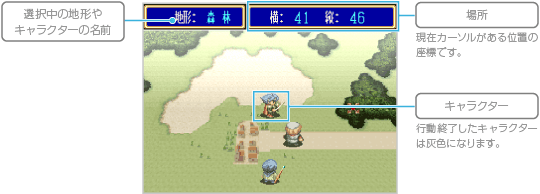 マップモードでは、行動コマンドを選んで移動したり、敵と戦ったりすることができます。