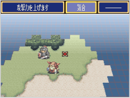 ガリオクが使えるコマンドです。周囲にいる味方1人の攻撃力を、そのターンの間だけアップさせることができます。 |