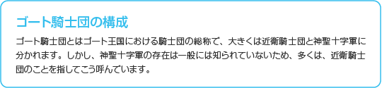 かつて吟遊詩人の謳い文句に、無敵の騎士団として賞賛されたゴート騎士団(近衛騎士団)を取り仕切る団長。その剣技はゴート騎士団屈指のものであり、巨大なドラゴンすら一撃のもとに倒してしまうほど。しかしこの無敵の騎士団も、10年前のオズワルドとの戦いで総督と多くの騎士たちを失い、壊滅状態へと追いやられてしまう。その後スレイは総督の娘ソフィアを引き取り、王都ゴートに戻っていた。ところが、再び進軍を開始したオズワルドを迎え撃つため、王よりゴート騎士団の復興を命ぜられ、ゴート王国中を飛び回り忙しい日々を送っている。 |