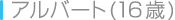 この冒険物語の主人公で、勇者の血を引く明るく正義感の強い少年。家系を遡ると王族の血をも引いている。ゴート4世の王女が勇者と恋に落ち、その地位を捨てて勇者との生活を選び、生涯をともにしたのだ。勇者の家系には、16歳になった男児は試練のために旅に出なくてはならないという習わしがあり、アルバートもその旅に出る矢先だった。そこへ運命の糸に導かれるかのごとくソフィアが現れ、オズワルドの野望を阻止し世界の平和を守るという大きな使命を帯びた旅となった。 |