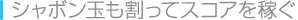 敵が水中に落ちるとシャボン玉が現れ、これを割るとスコアを獲得できます。ハイスコアを狙うにはシャボン玉も忘れずに割るようにしましょう。