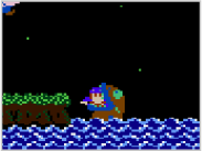 プレイヤーが水面近くを飛んでいると、魚が現れて食べられてしまうことがあります。水面近くを飛ぶときは、敵だけでなく魚にも注意してください。